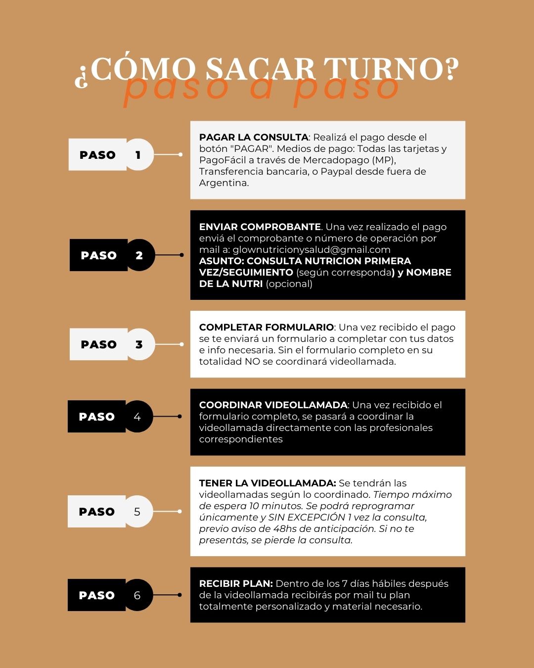 - Dentro de las 72hs hábiles de recibir el formulario COMPLETO se comunicará la nutri con vos para coordinar la videollamada. La fecha de la misma dependerá de la agenda de cada profesional. Demora entre 1 a 2 semanas.